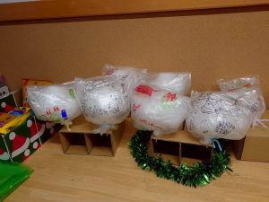 まずは、わたあめを入れる袋にクリスマスらしい絵を描いていきます。