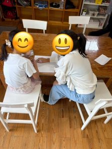 例えば、いつもは他児の意見を聞くことの方が多いお子さまも、ペアを組んだ相手が年下だった時には自分から積極的に声を掛ける姿が見られました。
